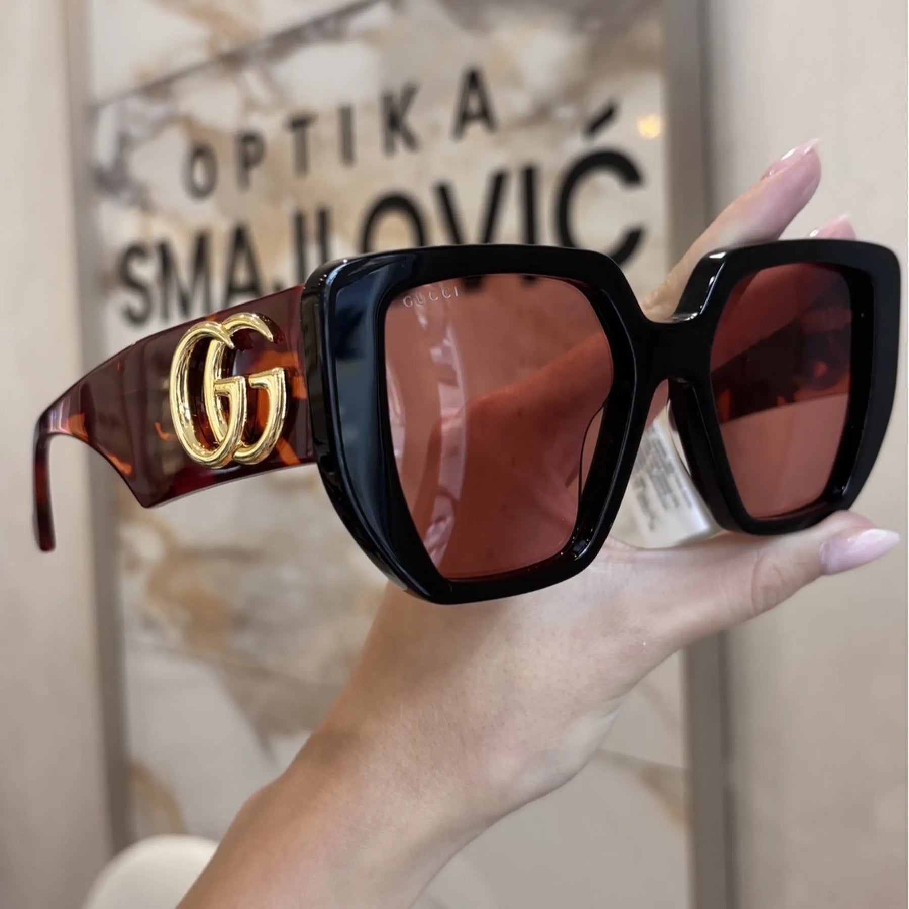 Gucci je jedan od najutjecajnijih modnih brendova na svijetu, osnovan u Firenci 1921. godine. Njihove naočale prepoznatljive su po smjelim oblicima, luksuznim detaljima i snažnom vizualnom identitetu. Često uključuju motive poput zlatnih pčela, pruga i logotipa “GG”. Gucci naočale nose brojne slavne osobe poput Harryja Stylesa i Dakote Johnson, a savršene su za one koji žele da ih svi primijete.