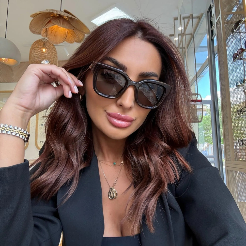 Gucci je jedan od najutjecajnijih modnih brendova na svijetu, osnovan u Firenci 1921. godine. Njihove naočale prepoznatljive su po smjelim oblicima, luksuznim detaljima i snažnom vizualnom identitetu. Često uključuju motive poput zlatnih pčela, pruga i logotipa “GG”. Gucci naočale nose brojne slavne osobe poput Harryja Stylesa i Dakote Johnson, a savršene su za one koji žele da ih svi primijete.