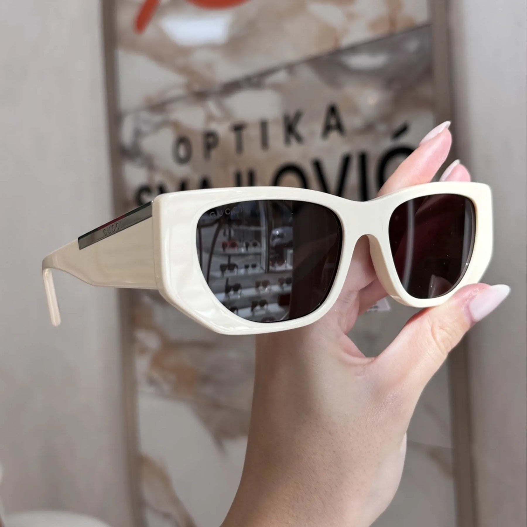 Gucci je jedan od najutjecajnijih modnih brendova na svijetu, osnovan u Firenci 1921. godine. Njihove naočale prepoznatljive su po smjelim oblicima, luksuznim detaljima i snažnom vizualnom identitetu. Često uključuju motive poput zlatnih pčela, pruga i logotipa “GG”. Gucci naočale nose brojne slavne osobe poput Harryja Stylesa i Dakote Johnson, a savršene su za one koji žele da ih svi primijete.